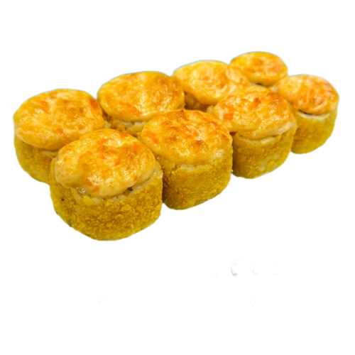 Имбирь и васаби не входят в комплектацию. Сыр сливочный, креветка в темпуре, масага, фирменный соус запечённый.